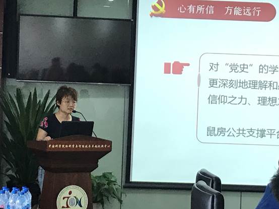 鼠房主管韓玲和大家分享了學(xué)習(xí)“四史”的心得體會(huì),她認(rèn)為心有所信,方能行遠(yuǎn),提議鼠房公共支撐平臺(tái)要堅(jiān)守為科研服務(wù)的信仰,把初心化作恒心,把使命化作擔(dān)當(dāng),從根本上回答好為誰做服務(wù)、怎樣做好服務(wù)的問題;作為黨員,要有擔(dān)當(dāng)精神,不斷自我完善和發(fā)展,把服務(wù)做全、做深、做新,在創(chuàng)新中鍛煉成長。