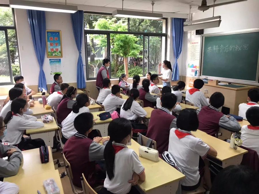 5月21日下午,中科院腦智卓越中心李毅研究員、竇艷儂副研究員、李葉菲博士、蔣夢萍博士、焦卓磊博士、王瑩博士、胡港研究生、吳超研究生根據位育初中各班級的特點,量身定制了“心靈閃電”“不耐痛是矯情么”“大腦通識”“共情背后的秘密”“神奇的下丘腦”“無創腦調控”“干細胞治療腦疾病”“神奇動物睡哪里?” 八個主題的科普講座。科普志愿者通過大量通俗易懂的視頻、音頻及圖片資料,為初一八個班300多名同學們普及了腦神經方面的科學知識。由于題材新穎,事先準備充分,語言生動活潑,四十分鐘的課上,同學們被貼近生活的事例,新鮮有趣的知識深深吸引。現場每個問題都能得到同學們的踴躍討論、發言。一些課外知識豐富的同學更是大膽質疑,提出自己的困惑。科普講座不僅激發了同學們對生活中科學知識的探索欲,了解到不少生活中的科學常識,更是增長了學生熱愛生命、熱愛生活的美好情感。