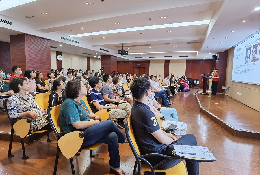 上海音樂(lè)學(xué)院黃靜副教授及其演職團(tuán)隊(duì)以“理論授課+音樂(lè)作品展演”的形式,通過(guò)將演奏的紅色經(jīng)典與黨史的關(guān)鍵時(shí)期相結(jié)合,將理論、歷史與音樂(lè)藝術(shù)相融合,呈現(xiàn)了“中國(guó)共產(chǎn)黨建立初期對(duì)革命道路的探索”“抗日戰(zhàn)爭(zhēng)時(shí)期民族大義和政治格局”“新中國(guó)的建立時(shí)期”“改革開(kāi)放與‘一國(guó)兩制’”、“新時(shí)代中國(guó)特色社會(huì)主義建設(shè)時(shí)期”五個(gè)模塊的內(nèi)容,寓教于“樂(lè)”地演繹了中國(guó)共產(chǎn)黨建黨百年以來(lái)、艱苦而輝煌的革命歷程、傳遞了其“一路走來(lái)一路歌”的革命樂(lè)觀主義精神,帶動(dòng)了在場(chǎng)的每一名聽(tīng)眾在音樂(lè)熏陶中接受教育,推動(dòng)黨史學(xué)習(xí)教育與文化自信深入人心。她還結(jié)合時(shí)代特征和革命形勢(shì),對(duì)每個(gè)歷史階段的音樂(lè)作品的創(chuàng)作背景及其重要意義等進(jìn)行了分析,分享了自己對(duì)于當(dāng)前新形勢(shì)下,黨員應(yīng)該如何發(fā)揮作用的理解認(rèn)識(shí)。