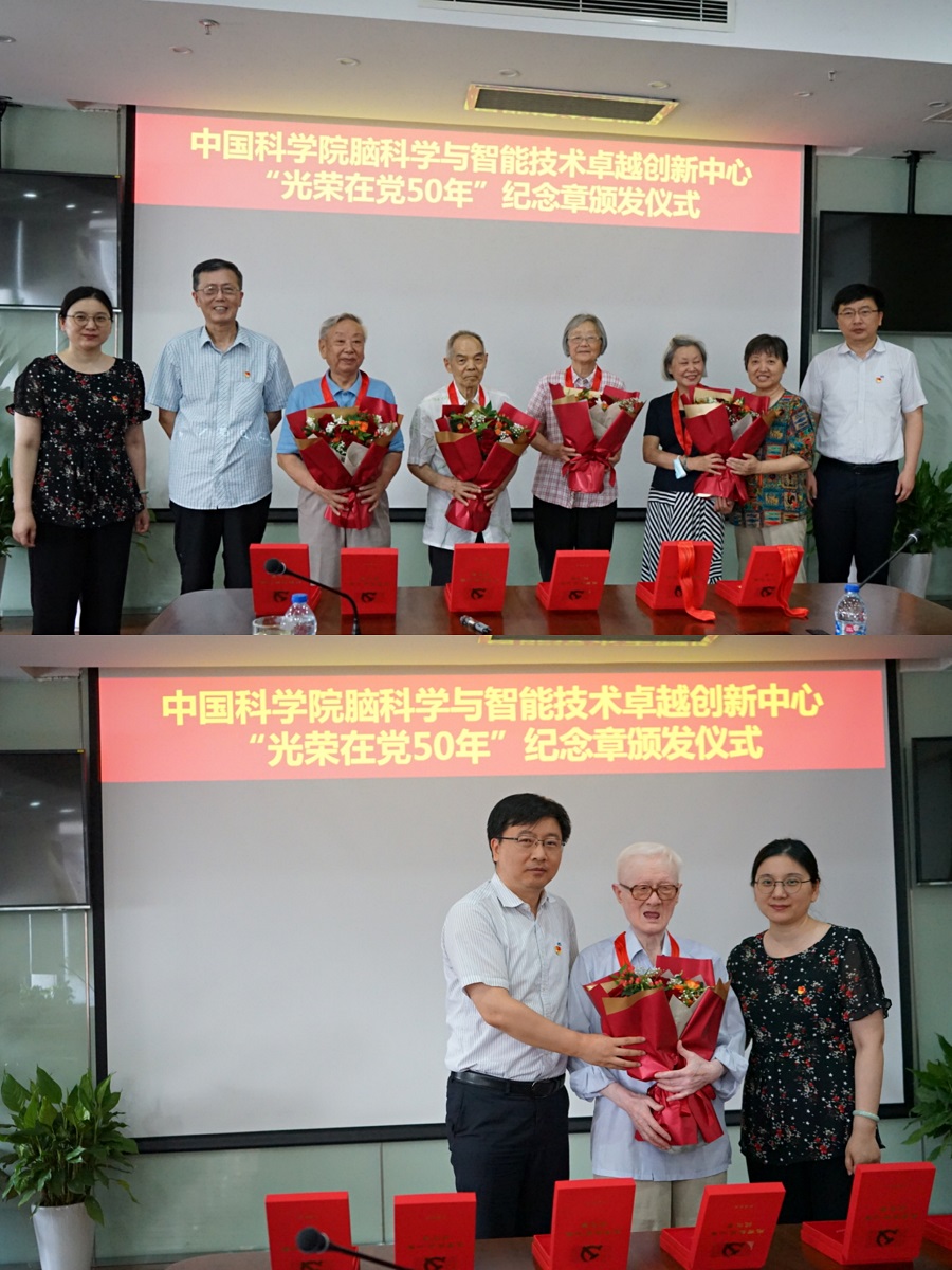 作為中科院腦智卓越中心慶祝中國共產黨成立100周年系列主題活動暨黨史學習教育的重要組成部分,2021年6月15日下午,中國科學院腦科學與智能技術卓越創新中心舉行了“光榮在黨50年”紀念章頒發儀式暨入黨初心分享會,包括黨委委員、紀委委員、黨支部委員、黨員代表、入黨積極分子、青年理論學習小組成員等在內的30余人參加了會議。會議由黨委副書記、紀委書記王茂華主持。