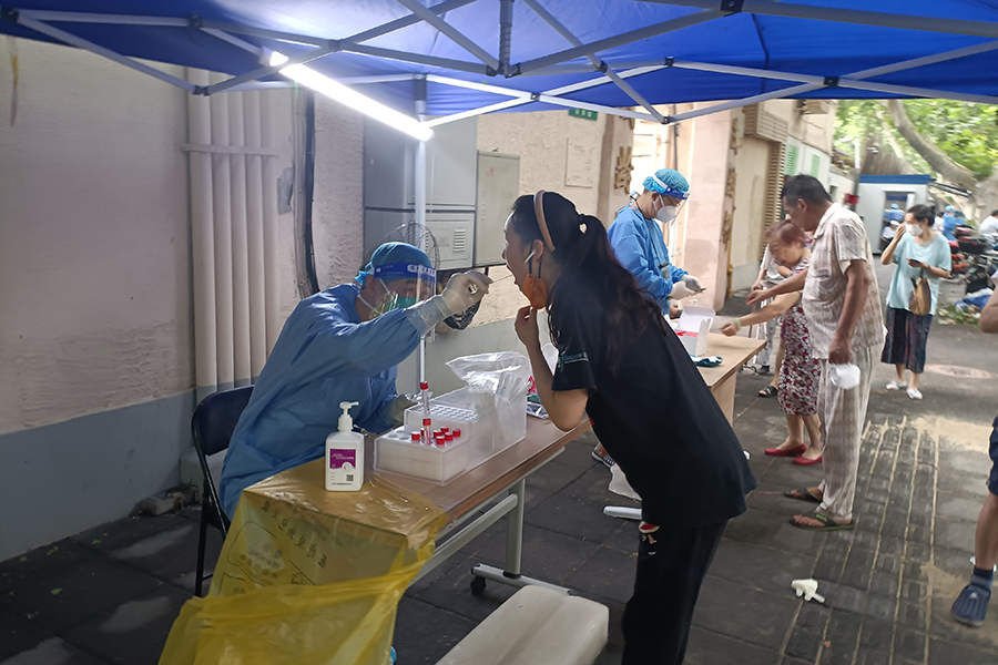 2022年8月21日,由腦智卓越中心第四黨支部帶隊,會同第一、第三、第五和第八黨支部等7位核酸檢測志愿者和往常一樣,準時到達天平街道的兩個采樣點位,開始核酸采集工作。
