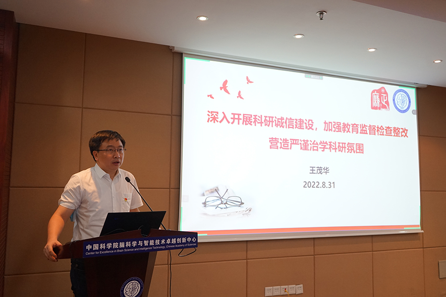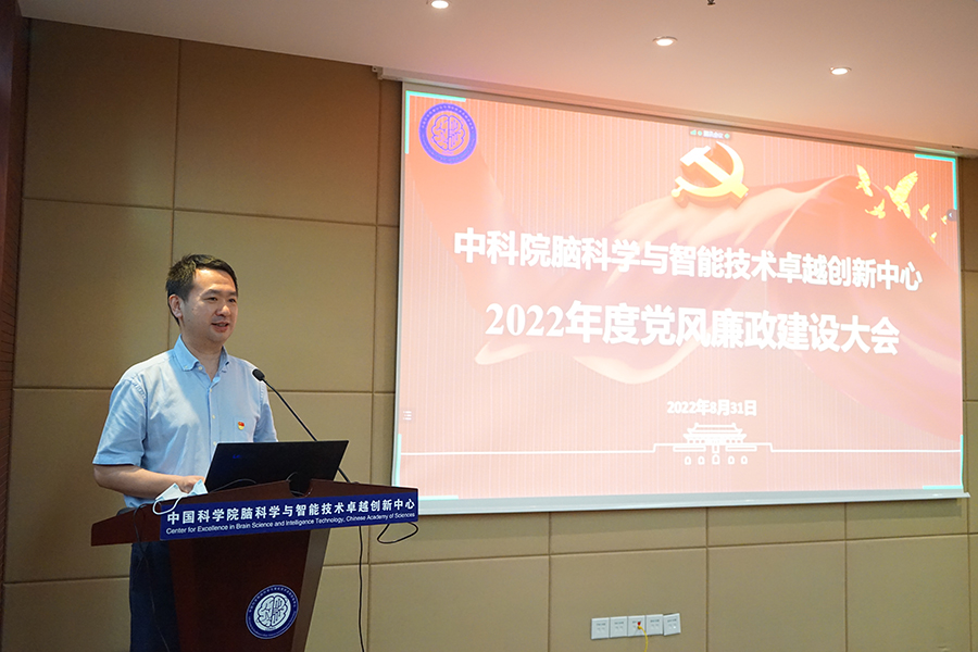 為進(jìn)一步加強(qiáng)中國(guó)科學(xué)院腦科學(xué)與智能技術(shù)卓越創(chuàng)新中心黨風(fēng)廉政建設(shè)和反腐敗工作,提升中心全體人員的廉政責(zé)任意識(shí)、規(guī)矩意識(shí)和底線(xiàn)思維,推動(dòng)全面從嚴(yán)治黨向縱深發(fā)展、向基層延伸,營(yíng)造風(fēng)清氣正的科研環(huán)境,保障中心各項(xiàng)工作穩(wěn)健開(kāi)展,2022年8月31日下午,中心召開(kāi)了2022年度黨風(fēng)廉政建設(shè)大會(huì)。中心領(lǐng)導(dǎo)班子成員、黨委委員、紀(jì)委委員、管理部門(mén)負(fù)責(zé)人、研究組組長(zhǎng)、平臺(tái)負(fù)責(zé)人、黨支部書(shū)記、群團(tuán)組織負(fù)責(zé)人、關(guān)鍵崗位人員、科研財(cái)務(wù)助理、支部紀(jì)檢委員等百余人通過(guò)“現(xiàn)場(chǎng)+視頻”雙會(huì)場(chǎng)形式參加了會(huì)議。上海分院分黨組副書(shū)記、紀(jì)檢組組長(zhǎng)、滬區(qū)黨委副書(shū)記、紀(jì)委書(shū)記王東,黨建工作部副主任兼紀(jì)檢監(jiān)督處副處長(zhǎng)(主持工作)周?chē)?guó)丞應(yīng)邀參會(huì)。會(huì)議由中心黨委副書(shū)記、紀(jì)委書(shū)記王茂華主持。