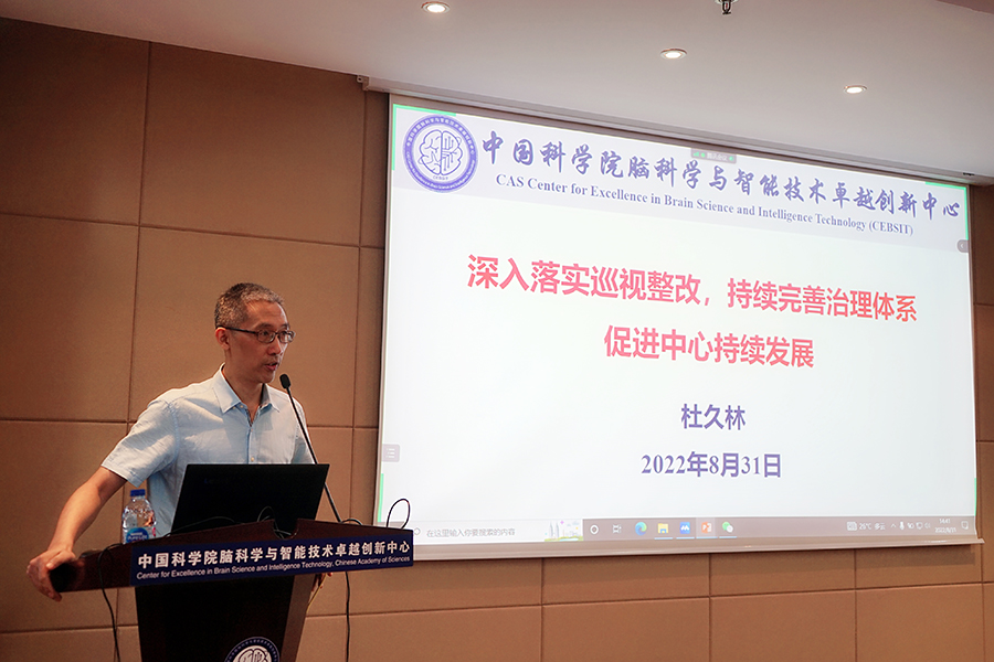 會(huì)議首先由中心副主任(主持工作)杜久林作了題為《深入落實(shí)巡視整改,持續(xù)完善治理體系,促進(jìn)中心持續(xù)發(fā)展》的專(zhuān)題報(bào)告,傳達(dá)了中科院2022年夏季黨組擴(kuò)大會(huì)議、中科院研究所所長(zhǎng)專(zhuān)題研討班以及落實(shí)巡視整改等的精神和要求,報(bào)告了巡視整改工作的組織實(shí)施情況,強(qiáng)調(diào)中心全體人員特別是與會(huì)代表,一定要認(rèn)真貫徹黨的理論路線(xiàn)方針政策和黨中央重大決策部署,落實(shí)好2022年夏季院黨組擴(kuò)大會(huì)議精神提出的六點(diǎn)要求,深刻領(lǐng)會(huì)并切實(shí)履行國(guó)家戰(zhàn)略科技力量職責(zé)使命,共同努力為使中心進(jìn)入腦科學(xué)研究機(jī)構(gòu)世界前列,為強(qiáng)化國(guó)家戰(zhàn)略科技力量、實(shí)現(xiàn)高水平科技自立自強(qiáng)做出應(yīng)有的貢獻(xiàn)。杜久林還結(jié)合巡視整改分析了完善中心治理體系的成效和思考,強(qiáng)調(diào)要進(jìn)一步深化巡視整改成效,通過(guò)明確定位把方向、勇于改革抓機(jī)遇、建強(qiáng)隊(duì)伍擔(dān)使命、科學(xué)決策強(qiáng)治理、規(guī)范制度強(qiáng)監(jiān)督、凝心聚力匯力量,建制度、強(qiáng)執(zhí)行、嚴(yán)監(jiān)督、樹(shù)長(zhǎng)效,持續(xù)促進(jìn)中心建體系、調(diào)模式、出成果、出人才、創(chuàng)文化等,促進(jìn)中心持續(xù)發(fā)展,共同助力科技強(qiáng)國(guó)。