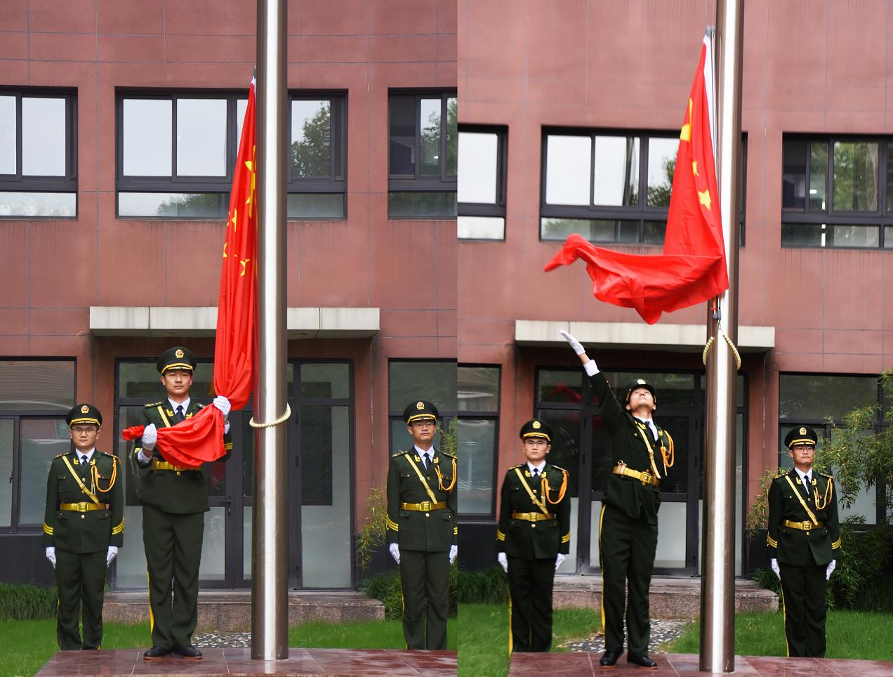“升國旗,奏國歌,向國旗行注目禮!” 隨著《國歌》響起,升旗手振臂揚起,全體唱國歌,目送五星紅旗冉冉升起,迎風飄揚。