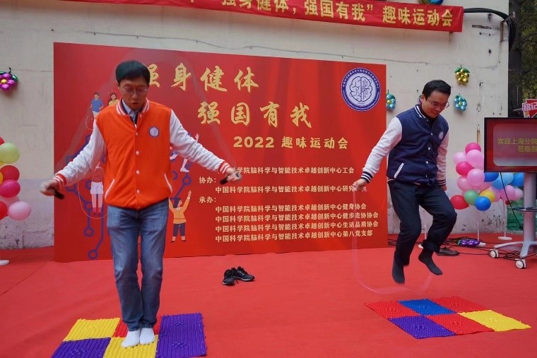 為深入學習宣傳貫徹黨的二十大精神,積極落實科教興國、人才強國、健康中國的戰略,培養德智體美勞全面發展的社會主義建設者和接班人,12月8日,中國科學院腦科學與智能技術卓越創新中心工會舉辦了2022年“強身健體 強國有我”趣味運動會,活動由研究生會協辦,健身協會、健步走協會、生活品質協會和第八黨支部聯合承辦,舞蹈協會、攝影協會參與承辦。上海分院工會常務副主席、黨建工作部主任朱熊,腦智卓越中心副主任(主持工作)杜久林,黨委副書記(主持工作)、副主任王燕,副主任王佐仁、孫衍剛出席了運動會。黨委副書記、紀委書記、工會主席王茂華主持了運動會開幕式。