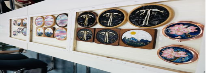 活動(dòng)中,專業(yè)技師介紹了掐絲琺瑯畫的歷史,講解了琺瑯畫制作的工藝流程和各種材料的用途及使用方法。在技師的示范和指導(dǎo)下,職工們使用金絲掐絲、釉料點(diǎn)藍(lán),親手在杯墊上制作出一幅幅色彩亮麗、質(zhì)感高雅的琺瑯畫。