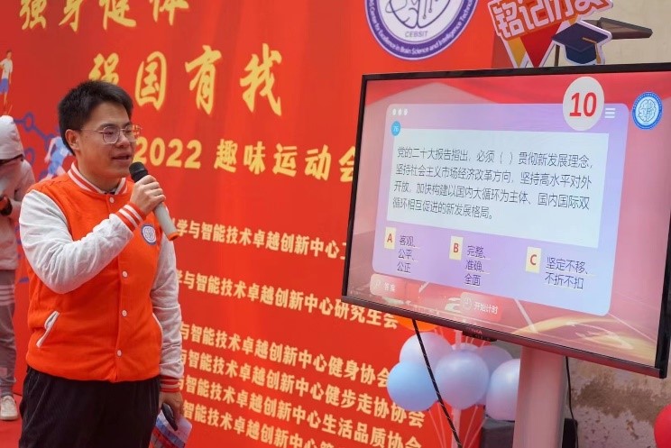為深入學習宣傳貫徹黨的二十大精神,積極落實科教興國、人才強國、健康中國的戰略,培養德智體美勞全面發展的社會主義建設者和接班人,12月8日,中國科學院腦科學與智能技術卓越創新中心工會舉辦了2022年“強身健體 強國有我”趣味運動會,活動由研究生會協辦,健身協會、健步走協會、生活品質協會和第八黨支部聯合承辦,舞蹈協會、攝影協會參與承辦。上海分院工會常務副主席、黨建工作部主任朱熊,腦智卓越中心副主任(主持工作)杜久林,黨委副書記(主持工作)、副主任王燕,副主任王佐仁、孫衍剛出席了運動會。黨委副書記、紀委書記、工會主席王茂華主持了運動會開幕式。