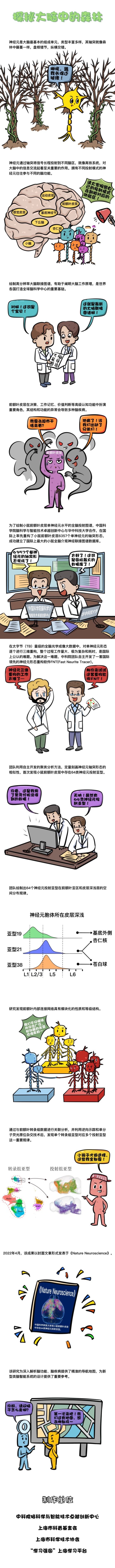 2022年3月31日23:00,《Nature Neuroscience》期刊以封面文章的形式在線發表了題為《小鼠前額葉單神經元投射圖譜》的研究論文,該研究由中國科學院腦科學與智能技術卓越創新中心(神經科學研究所)、神經科學國家重點實驗室、上海腦科學與類腦研究中心嚴軍研究組、徐寧龍研究組與華中科技大學蘇州腦空間信息研究院、武漢光電國家研究中心龔輝團隊合作完成。該研究在國際介觀圖譜領域率先重構了小鼠前額葉皮層6357個單神經元全腦投射圖譜,建立了國際上最大的小鼠全腦介觀神經聯接圖譜數據庫;首次發現小鼠前額葉皮層中存在64類神經元投射亞型,揭示了其空間分布規律,闡明了前額葉內部模塊化的連接網絡和等級結構、神經元轉錄組亞型與投射亞型的對應關系,從而揭示了前額葉皮層內部連接和外部投射的規律,并提出了前額葉皮層可能的工作模型。該研究不僅為深入研究高級認知功能的神經機制奠定了結構基礎,也為研究全腦介觀神經聯接圖譜提供了重要的技術支撐。
