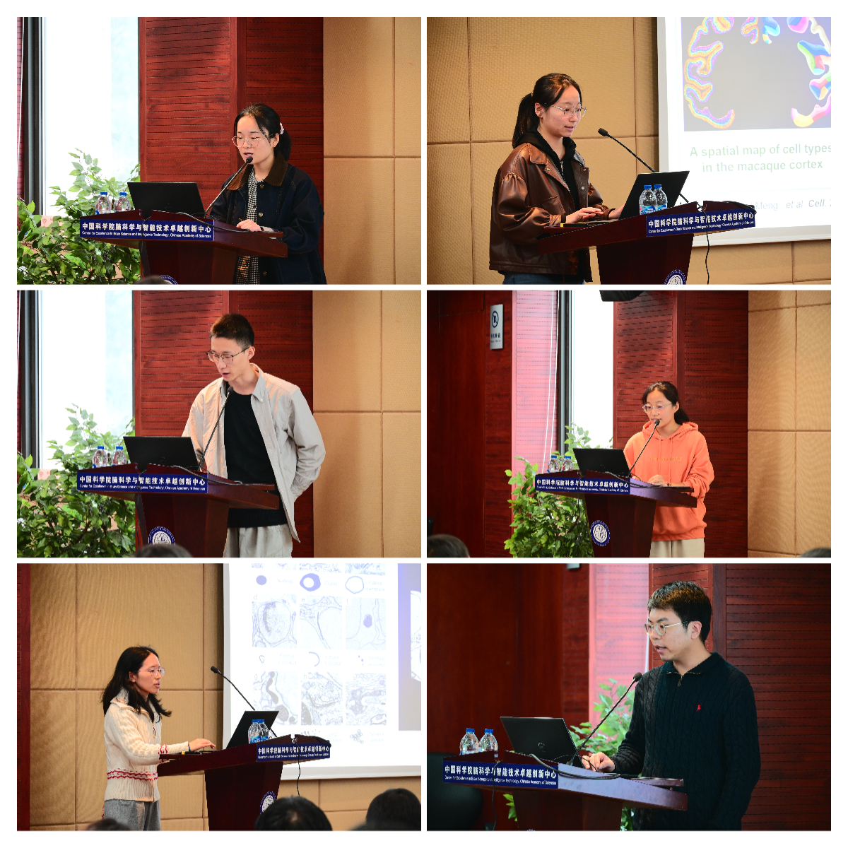 在口頭報告環節,杜赟、李嘉傲、時燦、孟娟、劉安然、張皓等研究生分別就前額葉皮層序列工作記憶、斑馬魚全腦微觀重建、獼猴皮層疾病基因調控元件圖譜、海馬空間功能組織、交感神經血氧穩態調節等前沿課題進行了精彩匯報,展現了中心研究生扎實的科研功底和創新的科學思維。